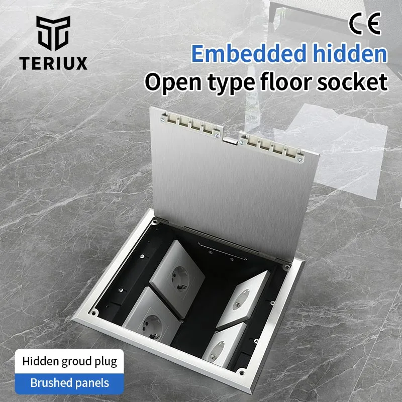 Inbäddad dold 250 insättningsgolvuttag med öppen typ av öppen typ, utformad för att harmonisera funktionalitet, säkerhet och estetik i olika miljöer.